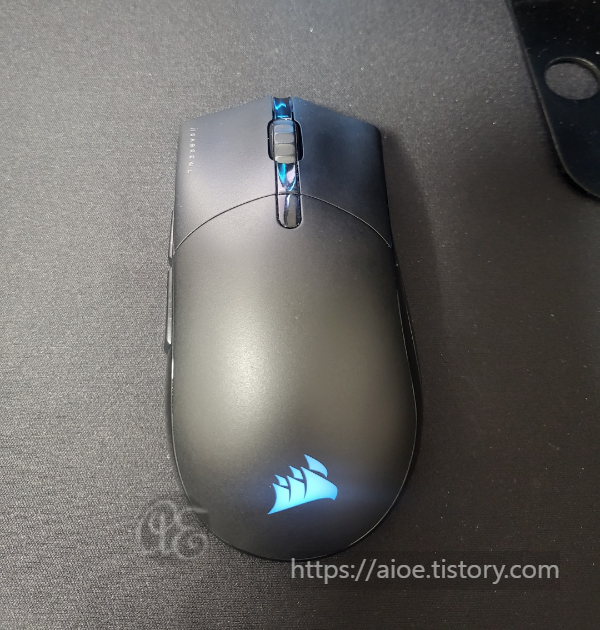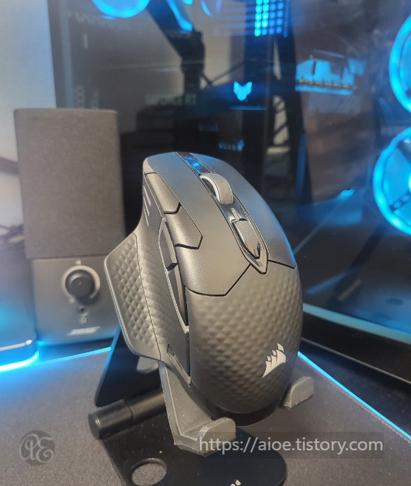 이러한 개인적 기준을 바탕으로 처음 선택한 커세어의 마우스 제품은 Qi 무선충전을 지원하는 다크코어 제품이었다. 첫인상을 봤을 때 누가봐도 게이밍 마우스구나라는 생각을 가지게끔 만드는 모양새였다. 사방에서 꾸역꾸역 채워넣은 듯한 RGB와 요란한 형태로 다채롭게 마감한 표면이 그러했다. 성능도 좋다하니 그런 모양새가 퍽 나쁘지는 않았다. 이렇게 나의 커세어 브랜드 마우스 선택은 다크코어로 마무리되는 듯 했다.