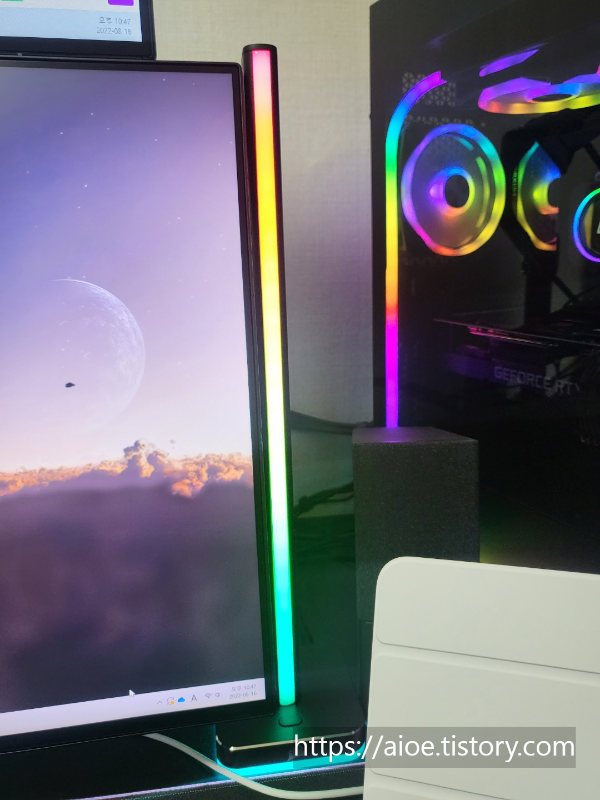 나의 경우에는 스타트킷만 가지고는 화면조명으로 사용하기에는 부족한 느낌을 받아 사운드에 따라 동작하는 오디오 조명 셋팅을 하고 사용하고 있는데, 방안의 분위기를 살려주는 역할로는 이만한 제품이 없는 것 같다. 오디오에 따라서 연동되어 나타나는 RGB를 보고 있으면 먹지않아도 배부른 느낌을 받을 수 있다.