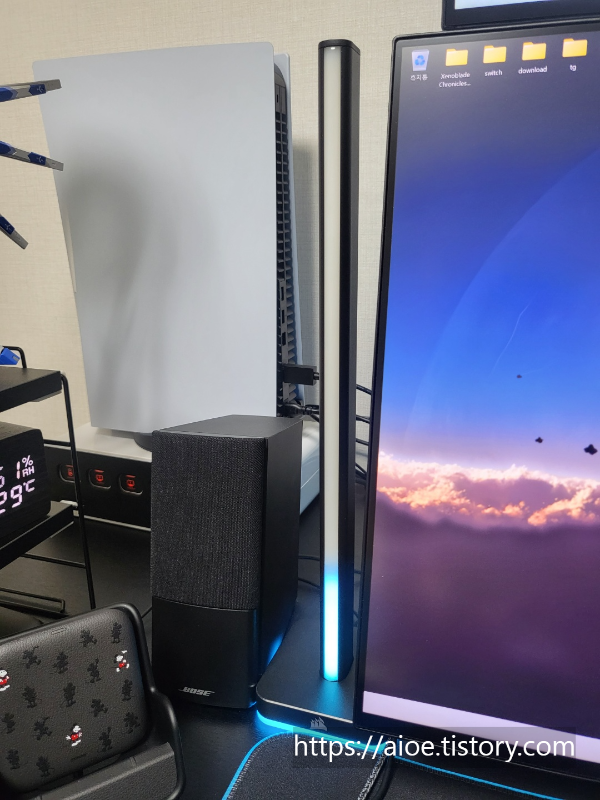 그러한 Corsair에서 나온 제품들 중 특이하게도 스마트 라이팅 타워라는 제품이 있다. 특별한 기능을 제공하는 것이 아니라 단순 RGB만 쏘아대는 컨셉의 제품이다. 물론, 필립스의 휴와 같이 모니터 화면과 동기화하거나 사운드에 맞춰 빛을 낸다거나 하다 못해 헤드셋을 걸어둘 수 있다는 기능은 있지만 본질적으로는 데스크를 화려하게 꾸미는데 주안점을 갖춘 제품이다.